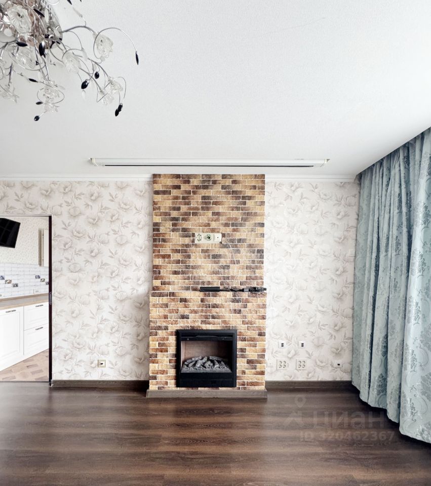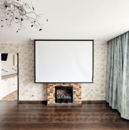 В гостиной центральная доминанта полноразмерный электрокамин из настоящего кирпича, выполняет помимо декора функцию обогревателя и увлажнителя воздуха. Система 3D-пара похожа на реальное пламя, что отличить практически невозможно. В гостиной выполнена подготовка для установки домашнего кинотеатра системы 5.1, выполнена разводка качественным акустическим кабелем, в том числе и для тыловых колонок, установлено крепление под мультимедийный проектор, установлен встроенный в потолок моторизованный экран для проектора одного из ведущих производителей экранов SCREENMEDIA. Ширина экрана 2,3 метра.