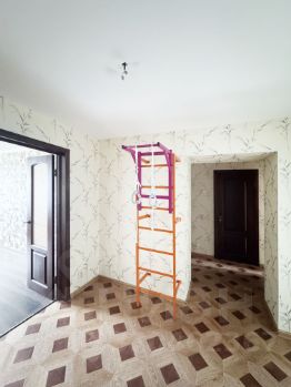 3-комнатная квартира площадью 76 квадратных метров, имеет выверенную планировку. В квартире имеются детская комната, мастер-спальня для взрослых, санузел, гардеробная комната, просторный холл, гостиная комната с системой домашнего кинотеатра и камина, полноценная кухня. Особенность планировки окна выходят на разные стороны дома.