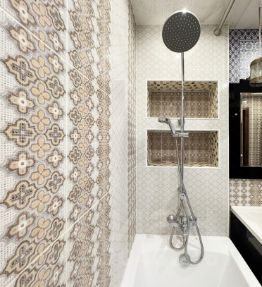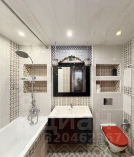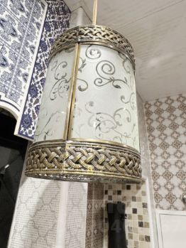 Ванная комната выполнена в восточном стиле, теплый пол, ванна из высококачественного толстого акрила, санфаянс Италия, мебель - AQUATON, светильники ODEON LIGHTS.