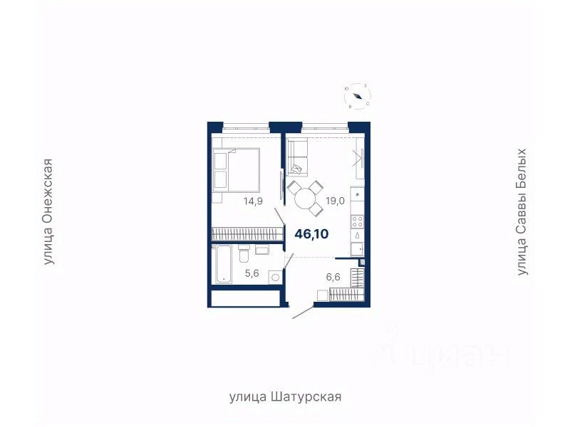 Общая площадь46,1 м²