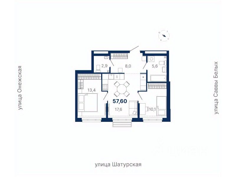Общая площадь57,6 м²