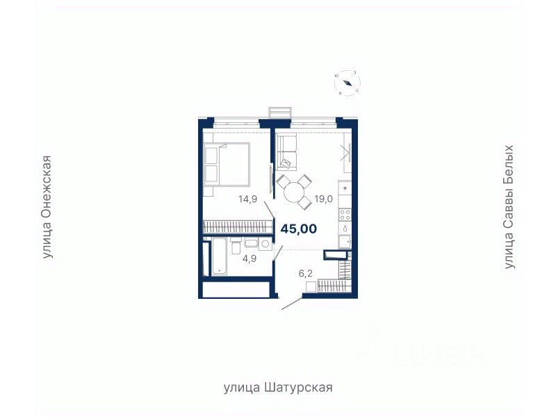 Общая площадь45 м²