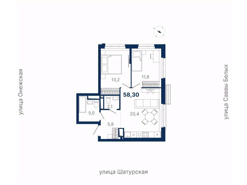 Общая площадь58,3 м²