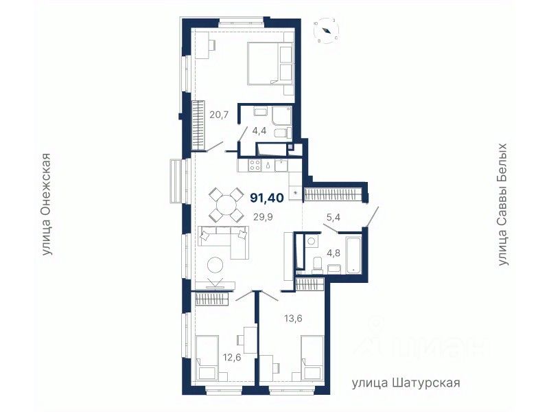 Общая площадь91,4 м²