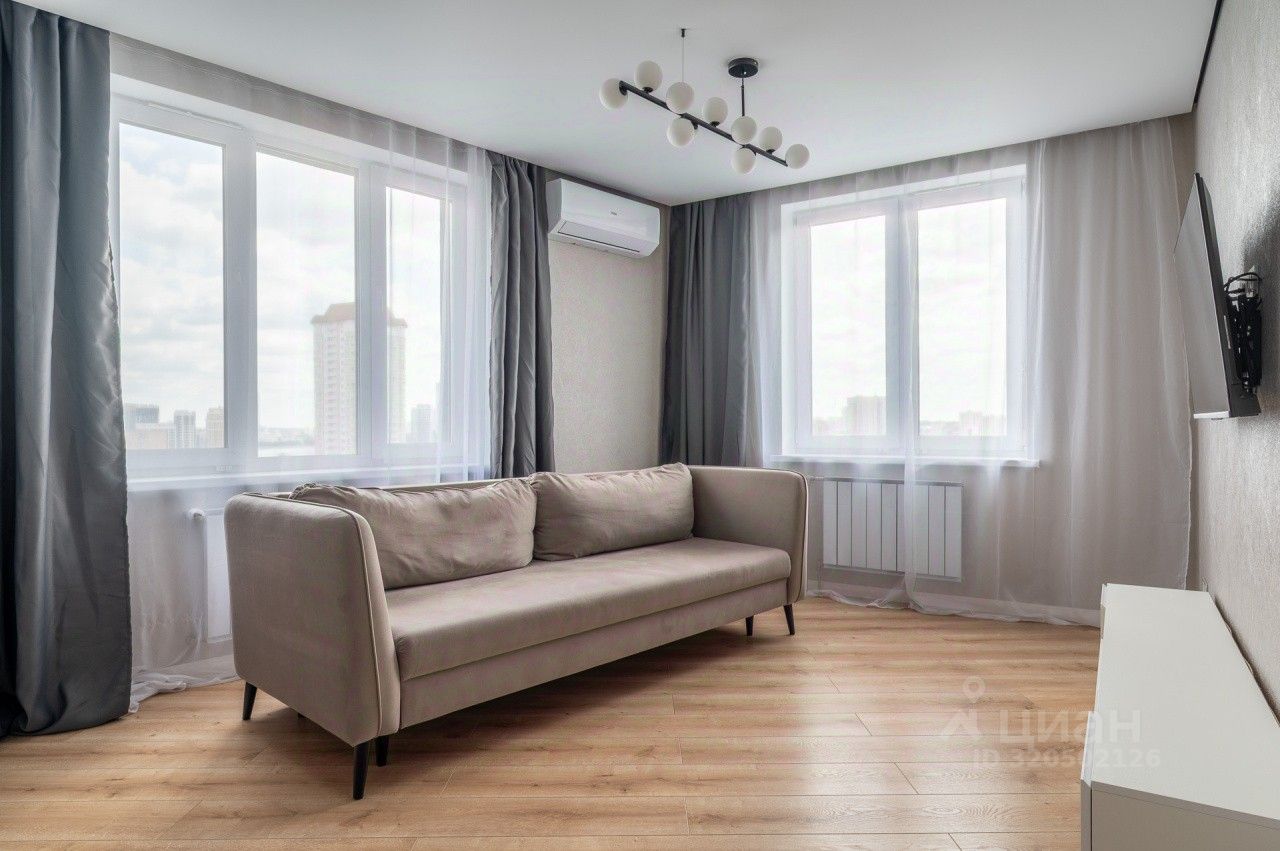 Квартира расположена на 13 этаже с красивым видом на город.