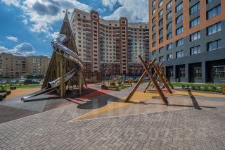 Двор с детскими и спортивными площадками, места для прогулок и тихого отдыха. Дом оснащен скоростными бесшумными лифтами. Трёхуровневый подземный паркинг на 1340 машино - мест. Вход в паркинг со двора.