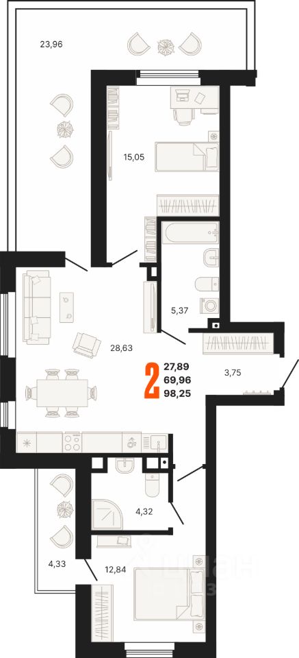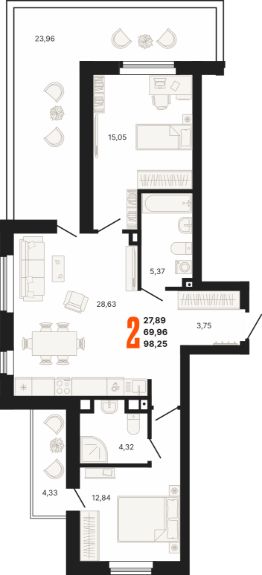 Продается Двухкомнатная квартира в одном из самых экологичных районов города Екатеринбург. Квартира находится 2 на этаже, площадью 98,25 кв.м. Срок сдачи: 4 квартал 2025 года.