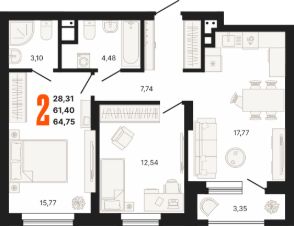 Продается Двухкомнатная квартира в одном из самых экологичных районов города Екатеринбург. Квартира находится 4 на этаже, площадью 64,75 кв.м. Срок сдачи: 4 квартал 2025 года.
