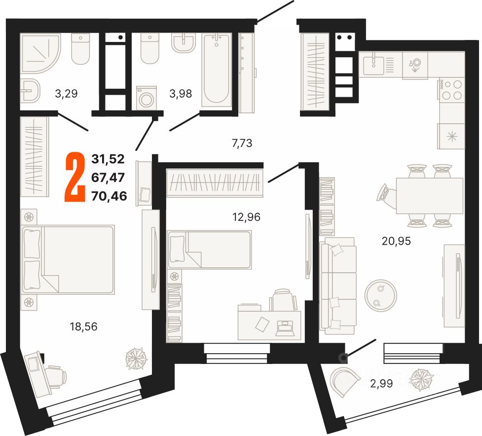 Продается Двухкомнатная квартира в одном из самых экологичных районов города Екатеринбург. Квартира находится 13 на этаже, площадью 70,46 кв.м. Срок сдачи: 4 квартал 2025 года.