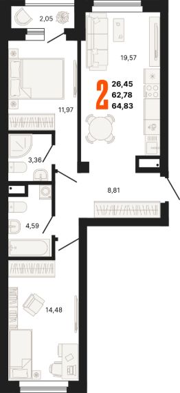 Продается Двухкомнатная квартира в одном из самых экологичных районов города Екатеринбург. Квартира находится 3 на этаже, площадью 64,83 кв.м. Срок сдачи: 4 квартал 2025 года.