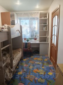 Часть мебели остается: кухонный гарнитур, холодильник, угловой шкаф, письменный стол в детской. 2 взрослых собственника и 2 ребёнка.