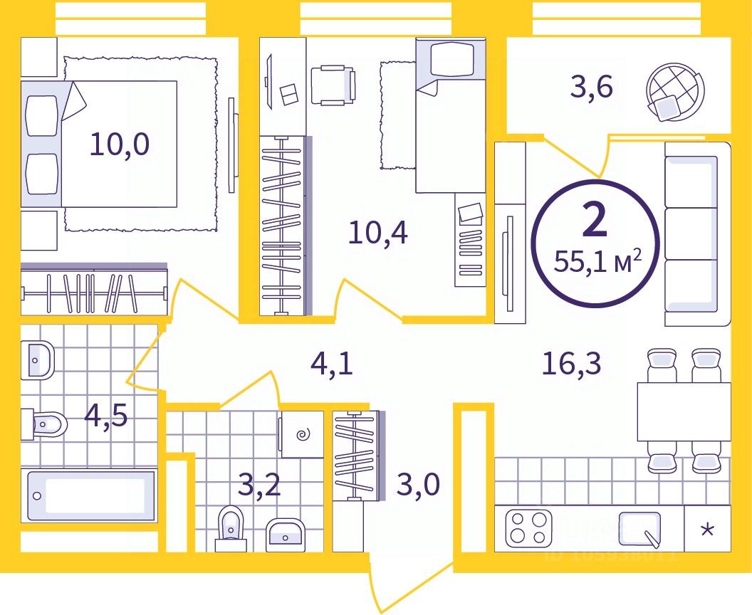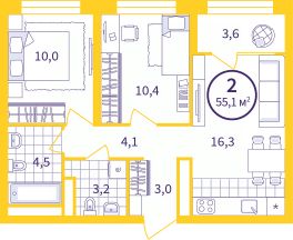Продается 2-комн. квартира от застройщика с отделкой в ЖК "Астон.Сезоны" на 16 этаже. Общая площадь: 53.26 кв.м., жилая: 20.4 кв.м., площадь просторной кухни-столовой: 16.3 кв.м. Комнаты изолированные, все окна выходят на одну сторону. В квартире одна лоджия, один совмещенный и один раздельный санузел. Высота потолков 2.7 м.