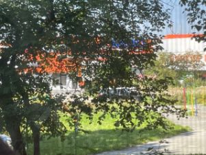 Просторный двор с детской площадкой. Место для автомобиля под окном