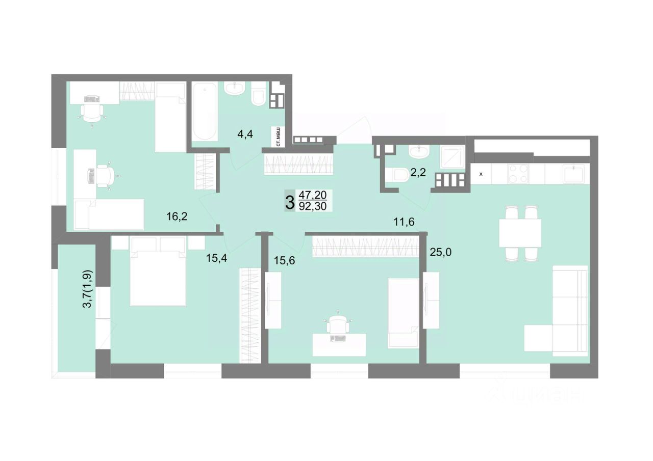 Общая площадь92,3 м²