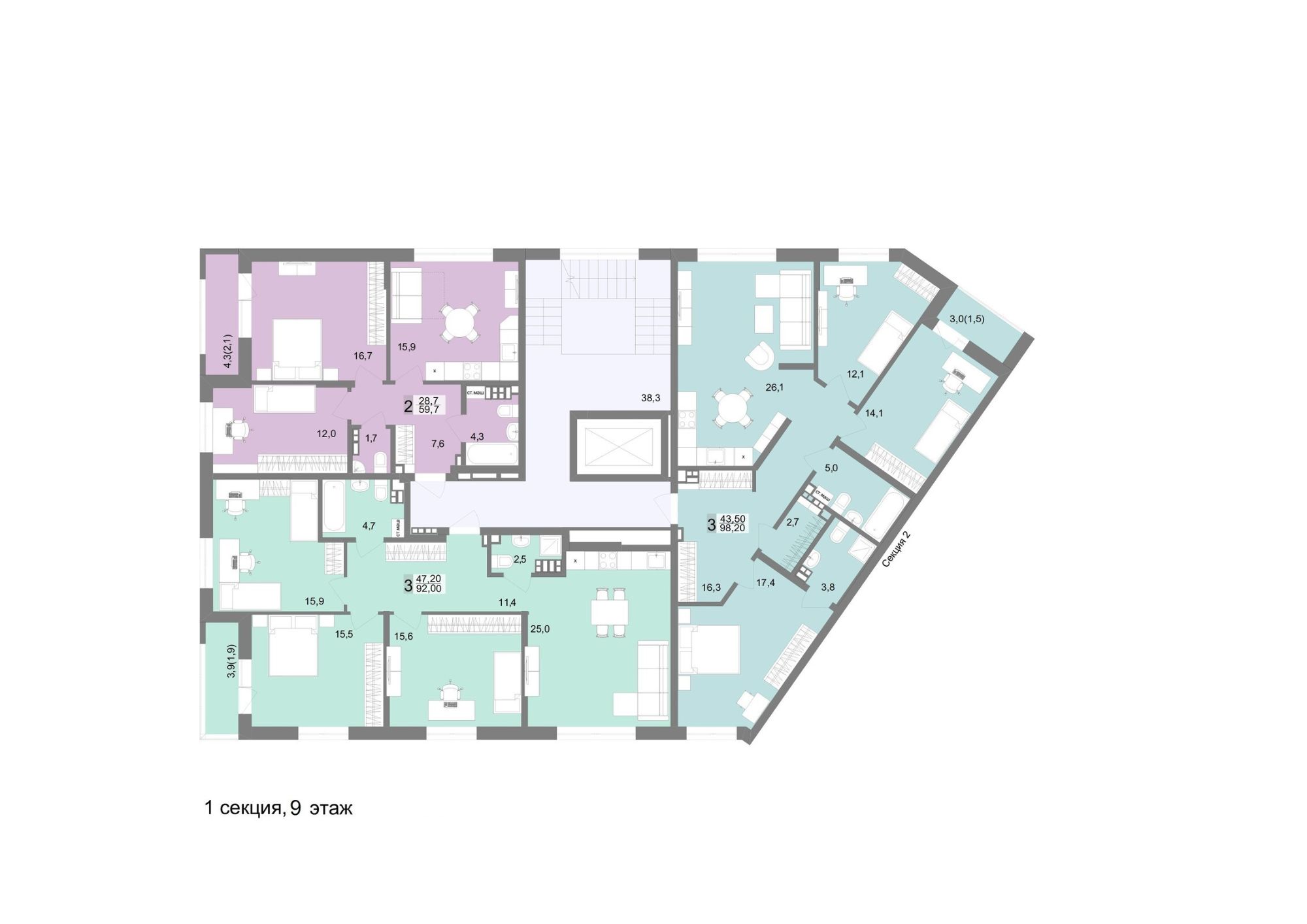 92,3 м²