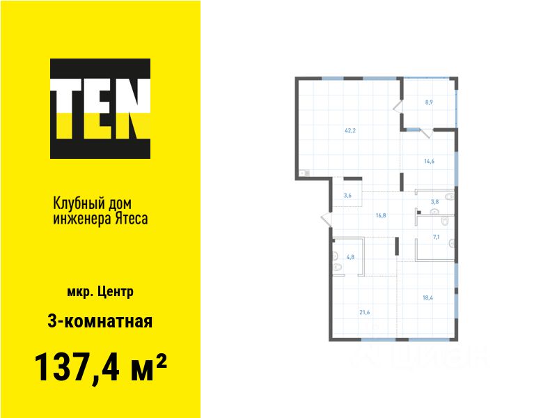 Квартира в Клубном доме инженера Ятеса в центре от застройщика TEN девелопмент! Ключи в 4 квартале 2025 года. Клубный дом инженера Ятеса - это элитный дом в самом центре комплексной застройки концепт-проекта "Екатерининский парк" и вершина инженерно-архитектурной мысли в рамках городского пространства! В доме всего 80 резиденций, по 2-3 резиденции на этаже — такое количество гарантирует максимальную приватность проживания. Гарантия безопасности и высокий уровень приватности также обеспечиваются благодаря двухуровневой системе закрытого двора, контролю гостевого доступа и видеонаблюдению с полным покрытием всей территории. Подземный паркинг на 155 машино-мест гарантирует уверенность в бережном хранении автомобилей всей семьи. Планировочные решения, с пилонами вместо стен, позволяют сформировать индивидуальное неповторимое пространство. А отсутствие отделки и потолки высотой 3,6 м станут идеальным холстом для воплощения любых дизайнерских задумок. Звоните или оставляйте заявку, чтобы узнать больше и забронировать квартиру!