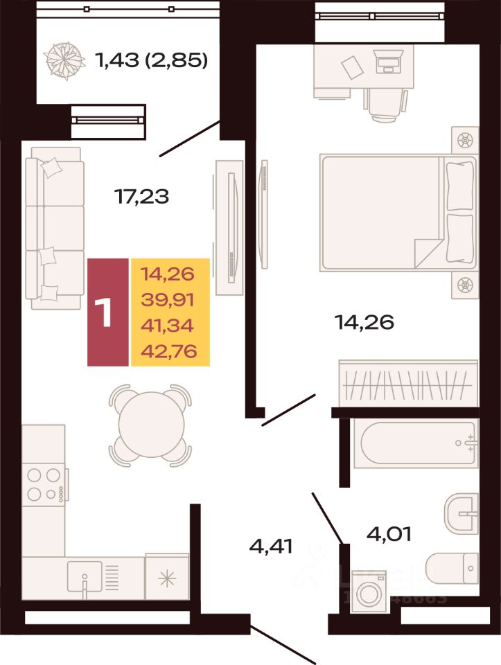 42,76 м²
