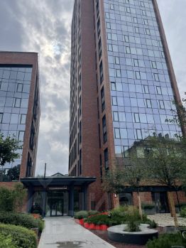 Этаж 17 — открывается панорамный вид на центр Екатеринбурга и зелёный сквер.