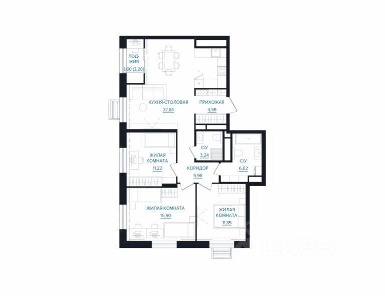 Продаётся 3-комнатная квартира в сданном доме (Энтузиастов, 18 (Секция 1)), срок сдачи: IV-кв. 2025, общей площадью 88.82 кв.м., на 23 этаже. Доминанта - новый проект девелопера Forum в северной части Екатеринбурга.