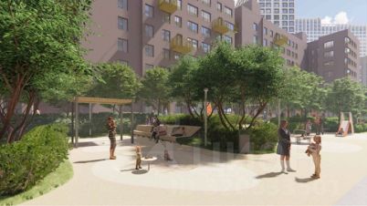 - Закрытый от посторонних двор-сад — зелёный оазис с прогулочными аллеями;