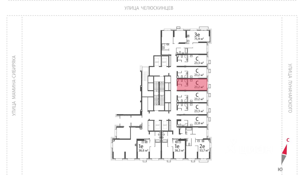 Жилой квартал расположится на участке площадью 2,6 га в границах улиц Челюскинцев Луначарского Азина Мамина-Сибиряка. Он будет состоять из шести стильных высоток, паркинга и детского сада. Общее дворовое пространство, закрытое от проезда автомобилей, обеспечит жителям безопасность и уют.