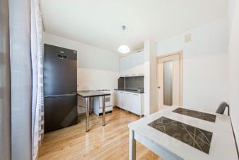 -Просторная кухня, где удобно готовить и принимать гостей.