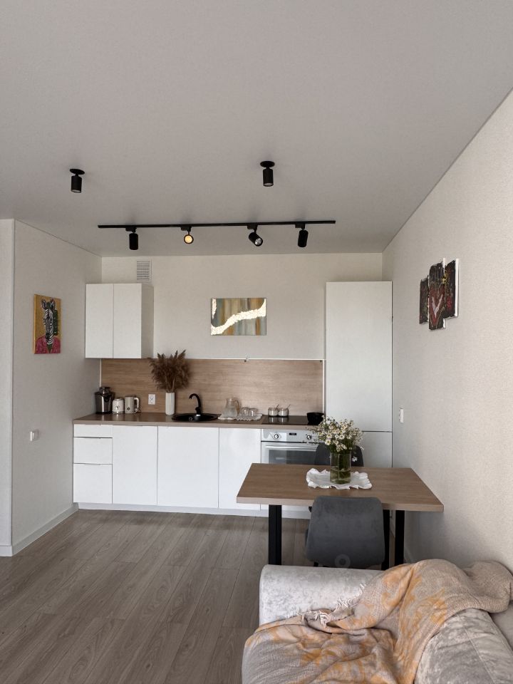 • Современная отделка в нейтральных тонах, керамогранит в санузле с теплым полом.