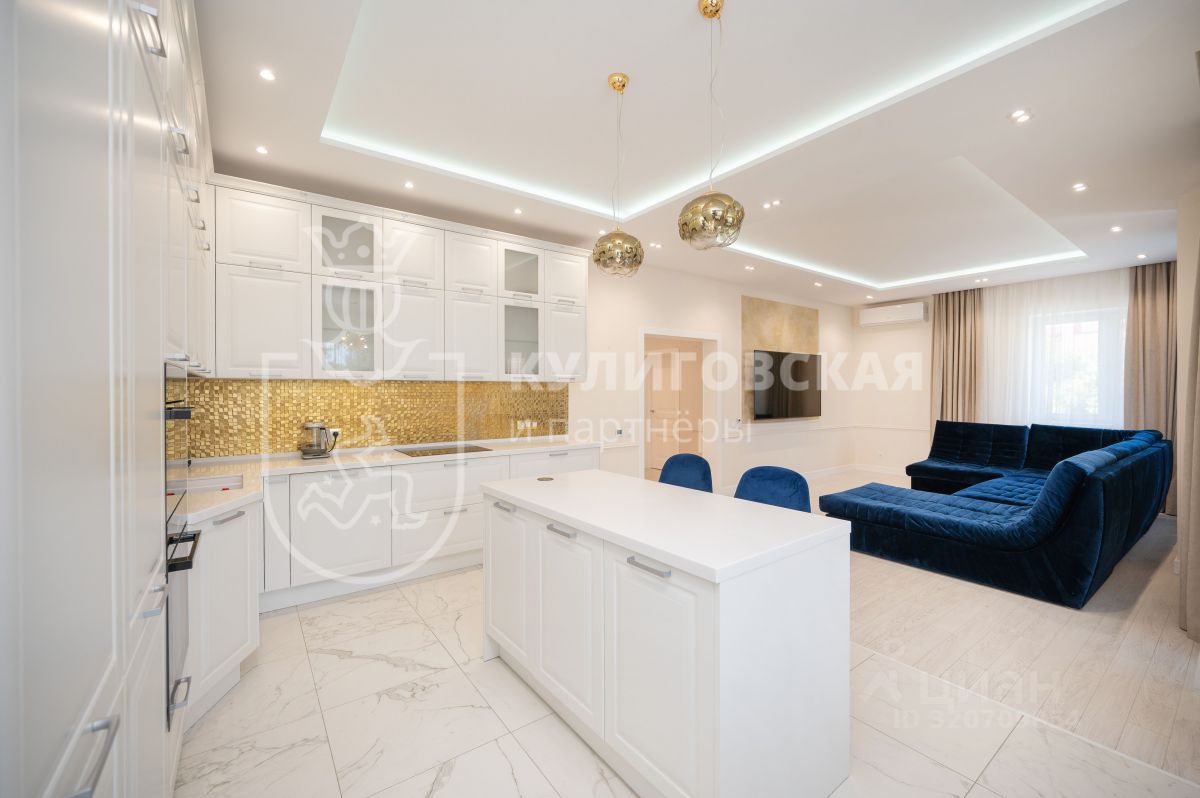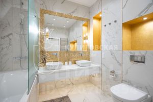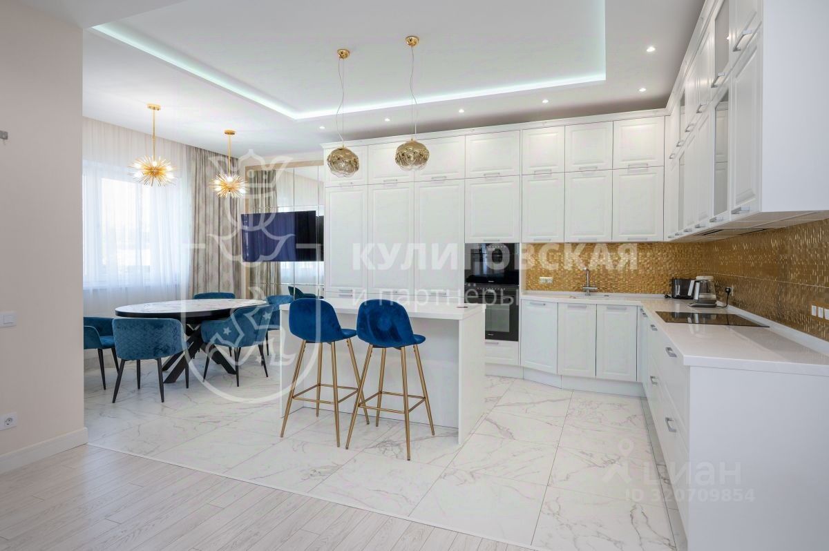 Невероятно светлая и воздушная квартира, с высокими потолками 3,5 метра, разноуровневым освещением и большим количеством окон, наполняющих пространство естественным светом. Дизайнерский ремонт выполнен в классическом современном стиле в светлых тонах, из дорогих зарубежных материалов, в том числе с использованием сусального золота.