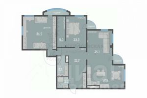 Продуманная функциональная планировка идеальна для комфортной жизни семьи с одним или двумя детьми. В квартире просторная прихожая, большая кухня-столовая, спальня с большой гардеробной, большая детская, ванная комната и гостевой санузел. В каждой комнате есть свой балкон. Вся мебель выполнена на заказ. Установлены кондиционеры и встроенная бытовая техника премиальных брендов Miele и LIEBHERR.