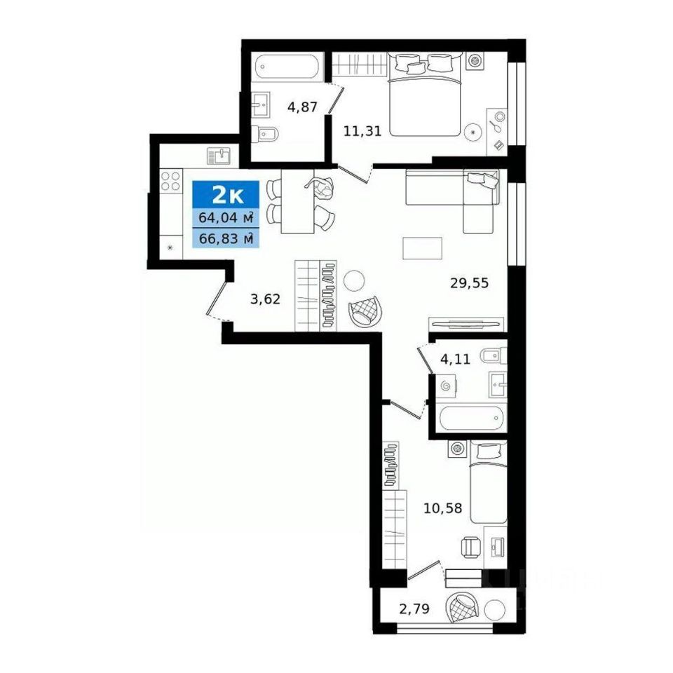 Общая площадь66,83 м²