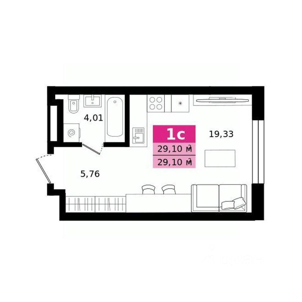Общая площадь29,1 м²