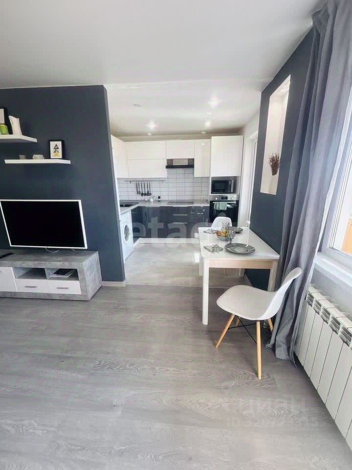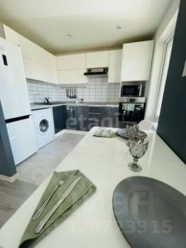 Функциональная кухня оборудована новым кухонным гарнитуром с полным комплектом техники: холодильник, варочная поверхность, вытяжка, встроенная посудомоечная машина, микроволновая печь, фильтры для воды. Вся мебель и техника остается новым хозяевам!