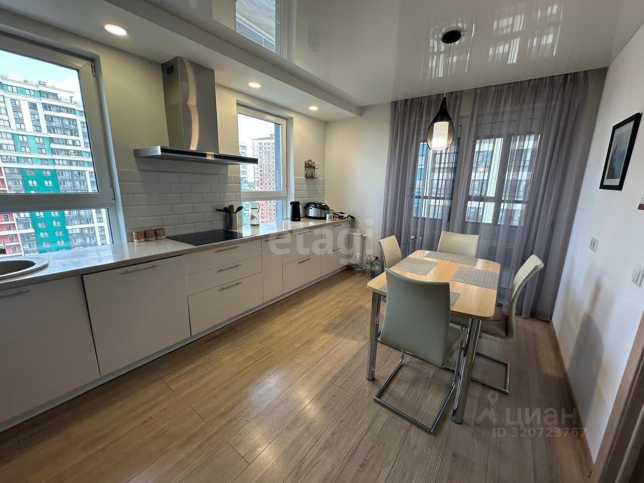 В квартире остается вся мебель, выполненная на заказ, кухонный гарнитур со столешницей из искусственного