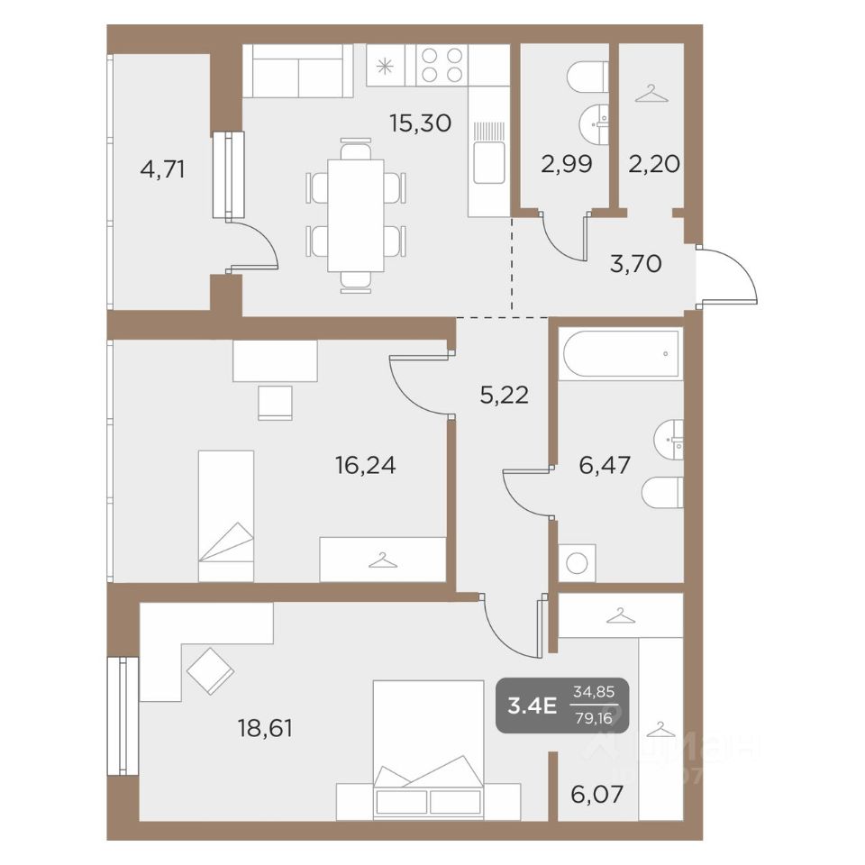Общая площадь79,16 м²