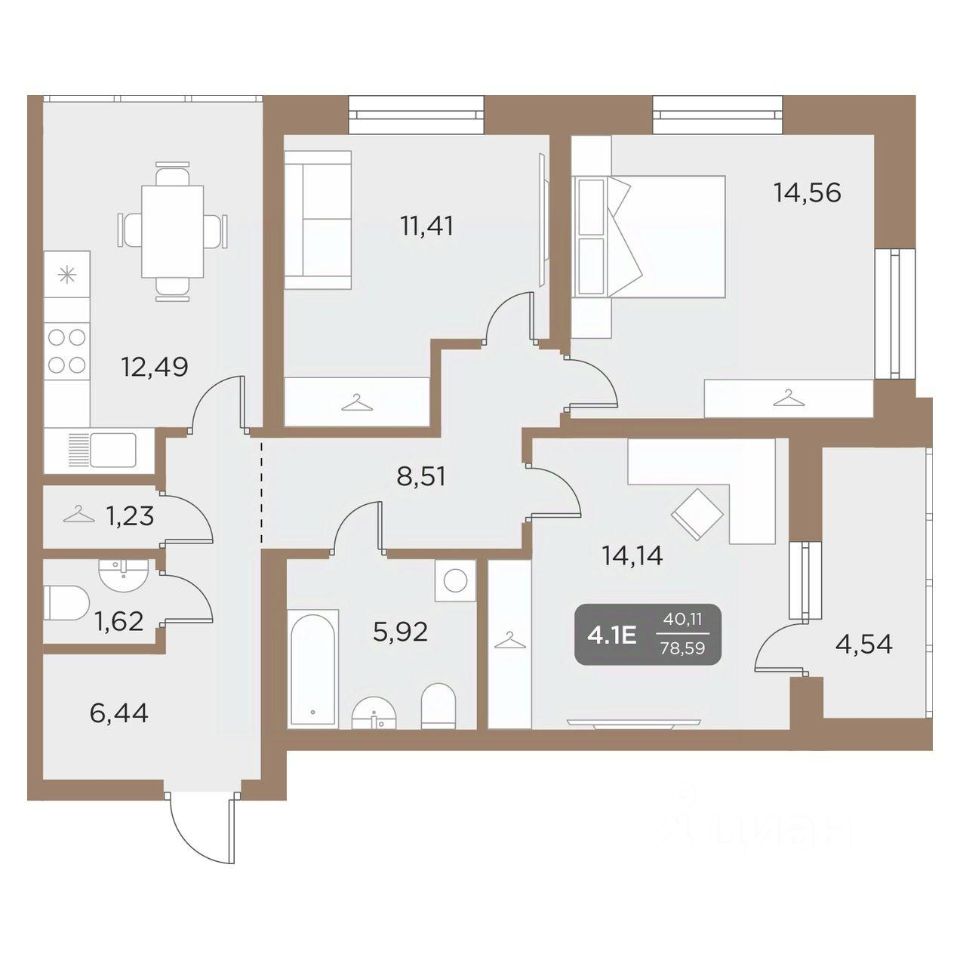 Общая площадь78,59 м²