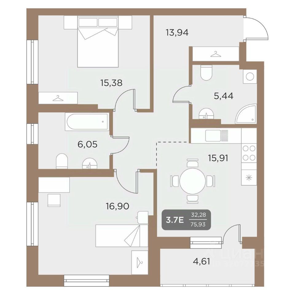 Общая площадь75,93 м²