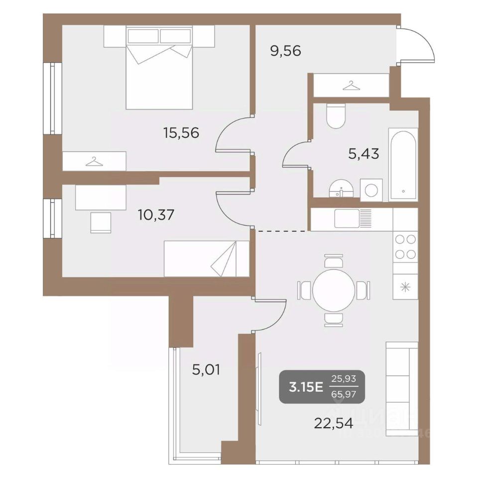 Общая площадь65,97 м²