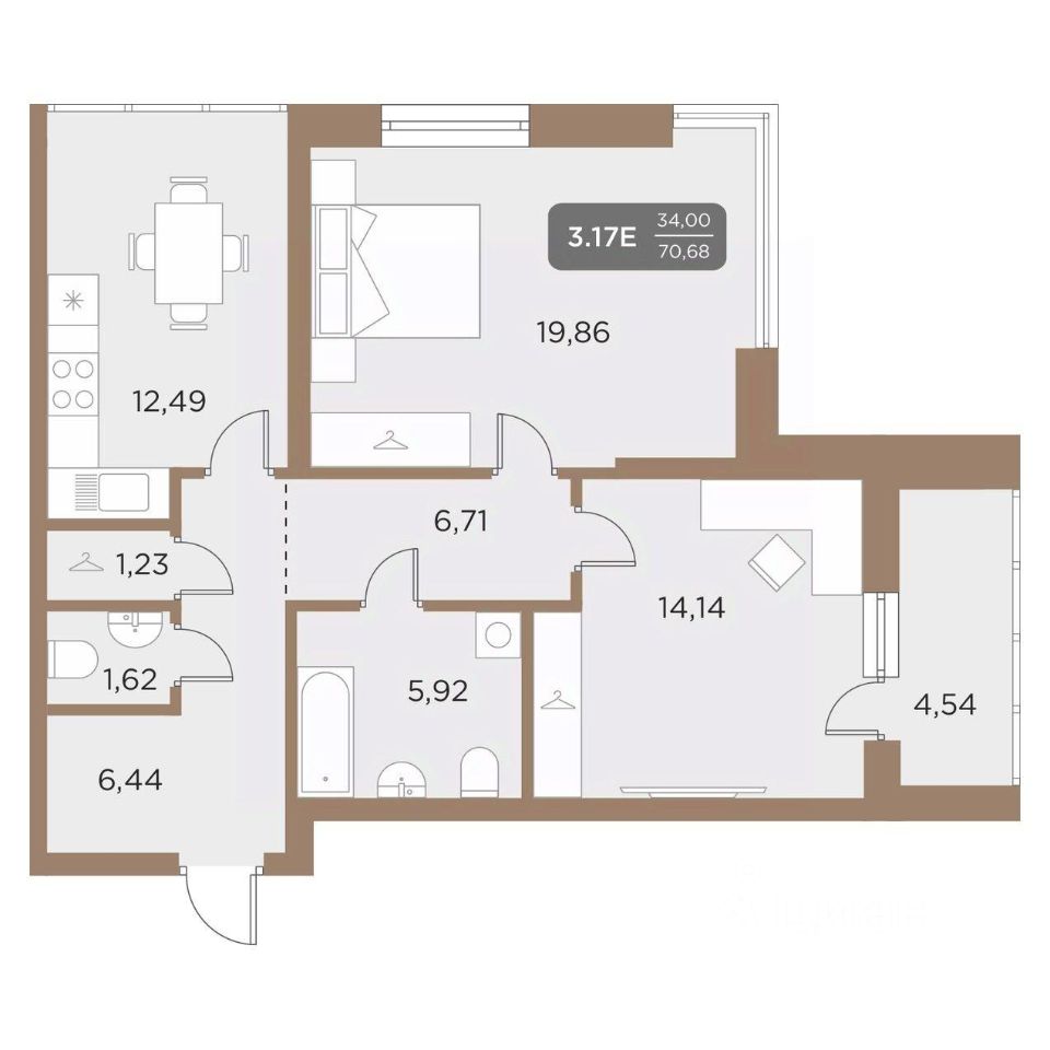 Общая площадь70,68 м²