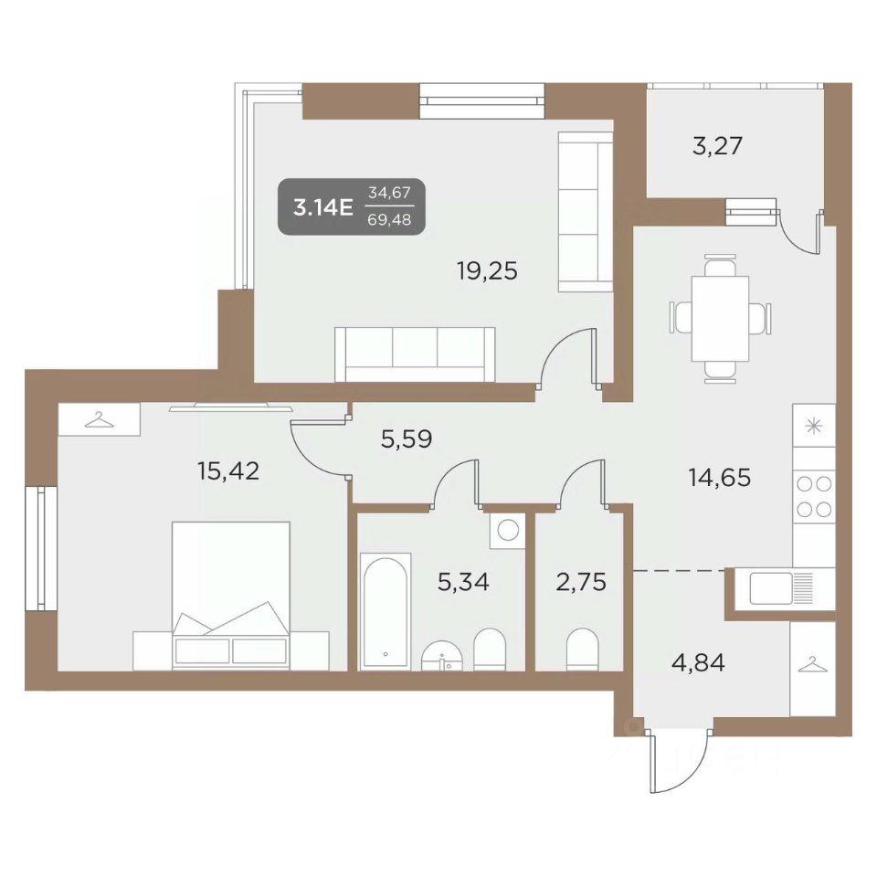 Общая площадь69,48 м²