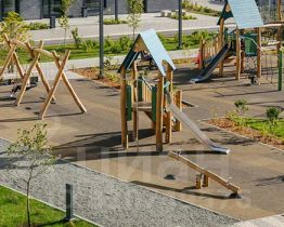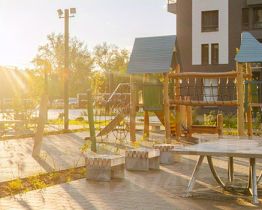 Проект включает шесть домов и многоуровневый паркинг. На первых этажах открываются кафе, магазины и полезные сервисы. А в уютных дворах-парках есть детские и спортивные площадки.