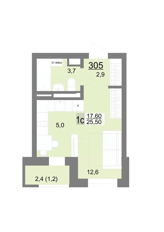 Продаётся студия в строящемся доме (Секция С1), срок сдачи: III-кв. 2026, общей площадью 25.4 кв.м., на 12 этаже. Многоэтажные жилые дома по ул. Металлургов от ГК "Астра". 1 очередь строительства