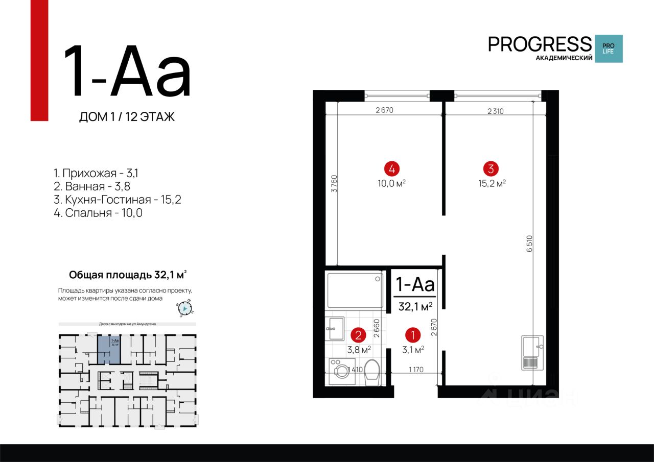 О компании: "Прогресс" — девелопер федерального уровня. Создаём современный стиль жизни с 2012 года. Совершенствуем культуру нашего общества. Предвосхищаем ваши ожидания. "Прогресс" - группа компаний полного цикла. Мы проектируем, строим и обслуживаем свои жилые комплексы. Входим в топ - 10 застройщиков по потребительским качествам ЖК по версии "Единый ресурс застройщиков". Мы - обладатель федеральных и европейских наград в сфере недвижимости: Urban Awards, European Property Awards, "Надёжный застройщик России" и др. Новый проект от создателей жилого квартала "Amundsen" "Progress Академический" - это место, где безопасно и уютно. Вы прочувствуете настоящую жизнь в режиме "здесь и сейчас". Удобная локация делает этот проект максимально привлекательным для тех, кто устал от суеты и ограниченных пространств. Безопасный благоустроенный двор, умные планировки и зонирование территории все это позволит почувствовать новый уровень комфорта. Соседство с лесным массивом, улучшает качество воздуха и создает уникальное экологически чистое окружение. Умные планировки. При проектировании дома наши архитекторы закладывают систему SMART- планировок: - Только разумное распределение полезной площади, которое отвечает реальным потребностям человека. Жители экономят деньги на протяжение всей жизни, ведь используется каждый уголок квартиры. - Несущие стены вынесены по периметру квартиры. Это дает возможность осуществлять перепланировку и реализовывать свои архитектурные идеи. - Все комнаты правильной формы, что упрощает расстановку мебели. Благоустроенные дворы. Наполнение двора детально продумано, с учетом потребностей каждого жителя. Детские площадки для разных возрастов, зоны отдыха, зеленые аллеи и пешеходные дорожки. В центре двора предусмотрен амфитеатр для общих встреч жителей и больших мероприятий. Собственная сервисная компания 24/7 поддерживает чистоту территории жилого квартала. Безопасность. Комплексная безопасность является одним из главных преимуществ. Проектом предусмотрено: закрытая придомовая территория без машин и круглосуточное видеонаблюдение без слепых зон, доступ через специальное мобильное приложение. Удобная локация. Инфраструктура обеспечит комфортную жизнь каждому. Это пространство с уникальной образовательной, спортивной и культурной инфраструктурой, необходимой для развития всесторонней личности. Парки и прогулочные зоны Продуктовые магазины "Пятерочка" и "Магнит" Тренажерные залы и фитнес-клубы 4 школы 9 детских садов Остановки общественного транспорта в 10 минутах ходьбы Технические преимущества: - система очистки водопроводной воды до питьевой - система телеметрии - установлены входные двери с тепло-шумоизоляцией - радиаторы отопления - наружные стены с встроенной шумоизоляцией - фасадная дренажная система позволяет избежать затопления фасадов и образования грязевых луж. Способы приобретения квартиры: • С помощью материнского капитала • В ипотеку Забронируйте квартиру по номеру телефона офиса продаж.