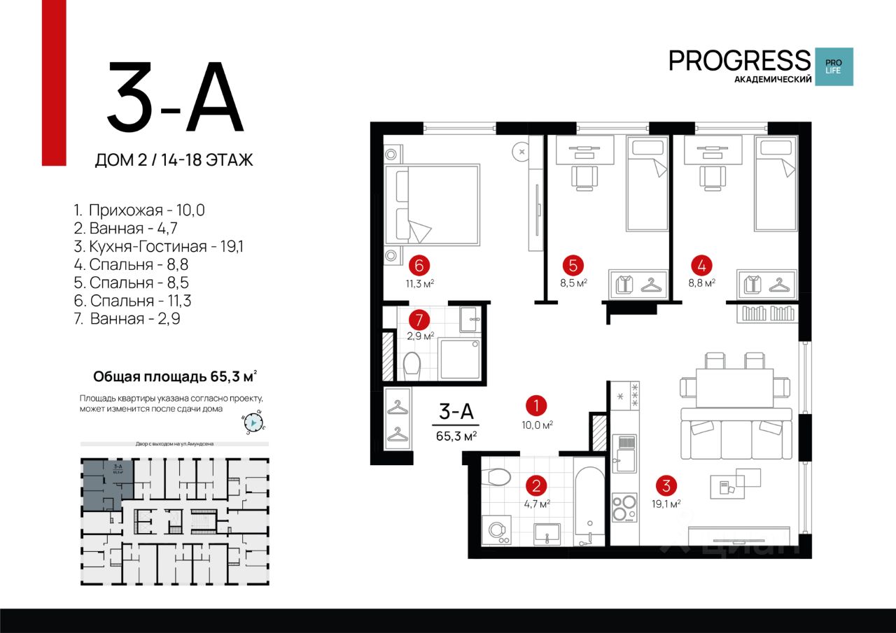 О компании: "Прогресс" — девелопер федерального уровня. Создаём современный стиль жизни с 2012 года. Совершенствуем культуру нашего общества. Предвосхищаем ваши ожидания. "Прогресс" - группа компаний полного цикла. Мы проектируем, строим и обслуживаем свои жилые комплексы. Входим в топ - 10 застройщиков по потребительским качествам ЖК по версии "Единый ресурс застройщиков". Мы - обладатель федеральных и европейских наград в сфере недвижимости: Urban Awards, European Property Awards, "Надёжный застройщик России" и др. Новый проект от создателей жилого квартала "Amundsen" "Progress Академический" - это место, где безопасно и уютно. Вы прочувствуете настоящую жизнь в режиме "здесь и сейчас". Удобная локация делает этот проект максимально привлекательным для тех, кто устал от суеты и ограниченных пространств. Безопасный благоустроенный двор, умные планировки и зонирование территории все это позволит почувствовать новый уровень комфорта. Соседство с лесным массивом, улучшает качество воздуха и создает уникальное экологически чистое окружение. Умные планировки. При проектировании дома наши архитекторы закладывают систему SMART- планировок: - Только разумное распределение полезной площади, которое отвечает реальным потребностям человека. Жители экономят деньги на протяжение всей жизни, ведь используется каждый уголок квартиры. - Несущие стены вынесены по периметру квартиры. Это дает возможность осуществлять перепланировку и реализовывать свои архитектурные идеи. - Все комнаты правильной формы, что упрощает расстановку мебели. Благоустроенные дворы. Наполнение двора детально продумано, с учетом потребностей каждого жителя. Детские площадки для разных возрастов, зоны отдыха, зеленые аллеи и пешеходные дорожки. В центре двора предусмотрен амфитеатр для общих встреч жителей и больших мероприятий. Собственная сервисная компания 24/7 поддерживает чистоту территории жилого квартала. Безопасность. Комплексная безопасность является одним из главных преимуществ. Проектом предусмотрено: закрытая придомовая территория без машин и круглосуточное видеонаблюдение без слепых зон, доступ через специальное мобильное приложение. Удобная локация. Инфраструктура обеспечит комфортную жизнь каждому. Это пространство с уникальной образовательной, спортивной и культурной инфраструктурой, необходимой для развития всесторонней личности. Парки и прогулочные зоны Продуктовые магазины "Пятерочка" и "Магнит" Тренажерные залы и фитнес-клубы 4 школы 9 детских садов Остановки общественного транспорта в 10 минутах ходьбы Технические преимущества: - система очистки водопроводной воды до питьевой - система телеметрии - установлены входные двери с тепло-шумоизоляцией - радиаторы отопления - наружные стены с встроенной шумоизоляцией - фасадная дренажная система позволяет избежать затопления фасадов и образования грязевых луж. Способы приобретения квартиры: • С помощью материнского капитала • В ипотеку Забронируйте квартиру по номеру телефона офиса продаж.