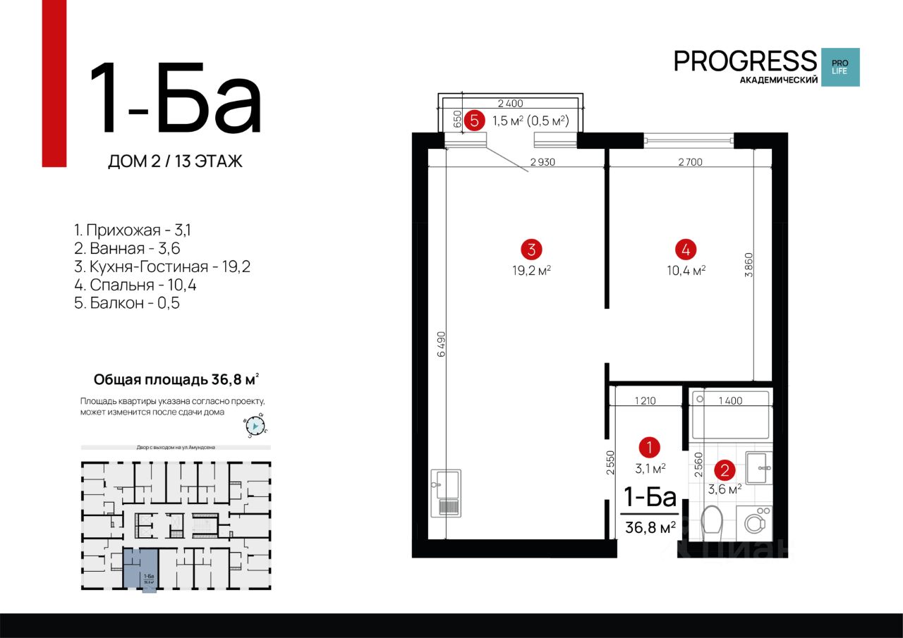 О компании: "Прогресс" — девелопер федерального уровня. Создаём современный стиль жизни с 2012 года. Совершенствуем культуру нашего общества. Предвосхищаем ваши ожидания. "Прогресс" - группа компаний полного цикла. Мы проектируем, строим и обслуживаем свои жилые комплексы. Входим в топ - 10 застройщиков по потребительским качествам ЖК по версии "Единый ресурс застройщиков". Мы - обладатель федеральных и европейских наград в сфере недвижимости: Urban Awards, European Property Awards, "Надёжный застройщик России" и др. Новый проект от создателей жилого квартала "Amundsen" "Progress Академический" - это место, где безопасно и уютно. Вы прочувствуете настоящую жизнь в режиме "здесь и сейчас". Удобная локация делает этот проект максимально привлекательным для тех, кто устал от суеты и ограниченных пространств. Безопасный благоустроенный двор, умные планировки и зонирование территории все это позволит почувствовать новый уровень комфорта. Соседство с лесным массивом, улучшает качество воздуха и создает уникальное экологически чистое окружение. Умные планировки. При проектировании дома наши архитекторы закладывают систему SMART- планировок: - Только разумное распределение полезной площади, которое отвечает реальным потребностям человека. Жители экономят деньги на протяжение всей жизни, ведь используется каждый уголок квартиры. - Несущие стены вынесены по периметру квартиры. Это дает возможность осуществлять перепланировку и реализовывать свои архитектурные идеи. - Все комнаты правильной формы, что упрощает расстановку мебели. Благоустроенные дворы. Наполнение двора детально продумано, с учетом потребностей каждого жителя. Детские площадки для разных возрастов, зоны отдыха, зеленые аллеи и пешеходные дорожки. В центре двора предусмотрен амфитеатр для общих встреч жителей и больших мероприятий. Собственная сервисная компания 24/7 поддерживает чистоту территории жилого квартала. Безопасность. Комплексная безопасность является одним из главных преимуществ. Проектом предусмотрено: закрытая придомовая территория без машин и круглосуточное видеонаблюдение без слепых зон, доступ через специальное мобильное приложение. Удобная локация. Инфраструктура обеспечит комфортную жизнь каждому. Это пространство с уникальной образовательной, спортивной и культурной инфраструктурой, необходимой для развития всесторонней личности. Парки и прогулочные зоны Продуктовые магазины "Пятерочка" и "Магнит" Тренажерные залы и фитнес-клубы 4 школы 9 детских садов Остановки общественного транспорта в 10 минутах ходьбы Технические преимущества: - система очистки водопроводной воды до питьевой - система телеметрии - установлены входные двери с тепло-шумоизоляцией - радиаторы отопления - наружные стены с встроенной шумоизоляцией - фасадная дренажная система позволяет избежать затопления фасадов и образования грязевых луж. Способы приобретения квартиры: • С помощью материнского капитала • В ипотеку Забронируйте квартиру по номеру телефона офиса продаж.