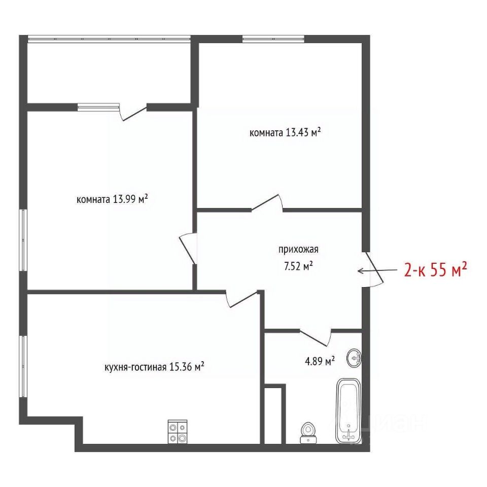 Уютная и светлая 2-комнатная квартира в ЖК "Перемена"!