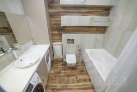 Керамогранит, итальянская коллекционная плитка, дубовый паркет, стильные обои (Швеция), европейская сантехника и мебель в ванной комнате.