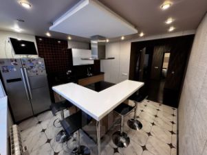 * Кухня: просторная, оборудована всей необходимой техникой, остров вынесен, мощная вытяжка, пол с подогревом, двухкамерный холодильник, посудомоечная машинка...