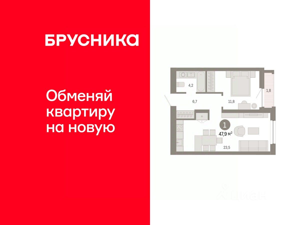 Квартира с кухней-гостиной и одной спальней в Южных кварталах. Особенности планировки: окна в пол, предчистовая отделка.