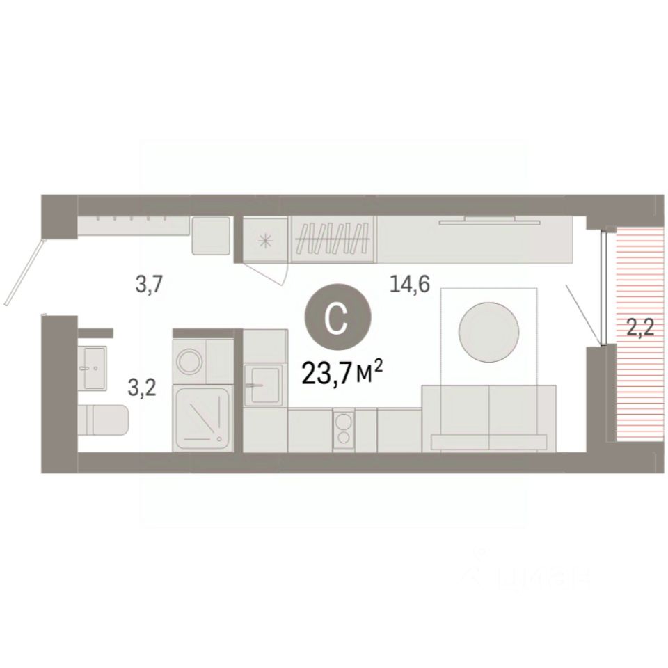 Студия в Южных кварталах. Особенности планировки: лоджия, предчистовая отделка.