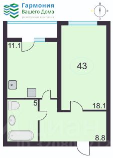 Общая площадь43 м²